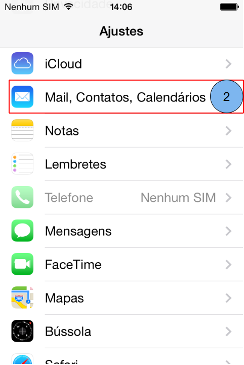 Na próxima tela clique em “Mail, Contato, Calendários” (2).